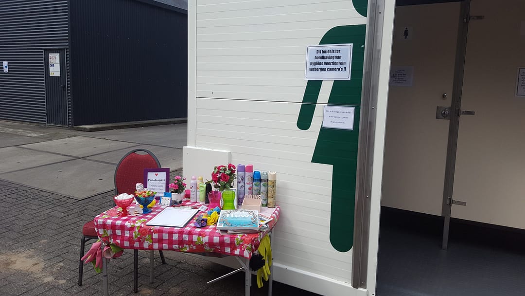 Toiletdame Cora, settelt zich bij uw toilet en maakt van ieder toiletbezoek een waar feest. Uw gasten mogen zelf hun toiletpapier kiezen evenals het luchtje voor de toiletspray. Inschrijven voor het toiletbezoek is een must, maar dan ontvang je ook wel een heuse plas- en poepkaart om te sparen voor de mooiste prijzen.