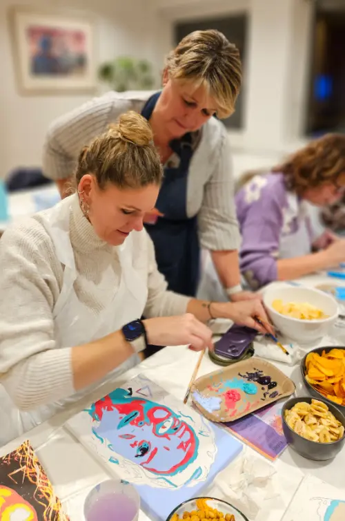 • Creatieve begeleiding: Onze ervaren instructeurs begeleiden je stap voor stap door het proces, van de eerste penseelstreek tot de laatste finishing touch. Of je nu een beginner bent of al wat ervaring hebt, iedereen kan een prachtig resultaat bereiken.